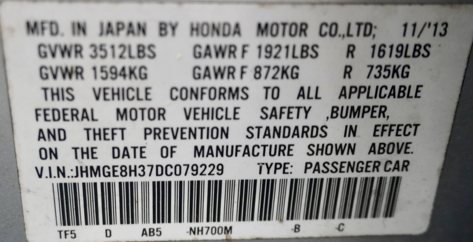 JHMGE8H37DC079229