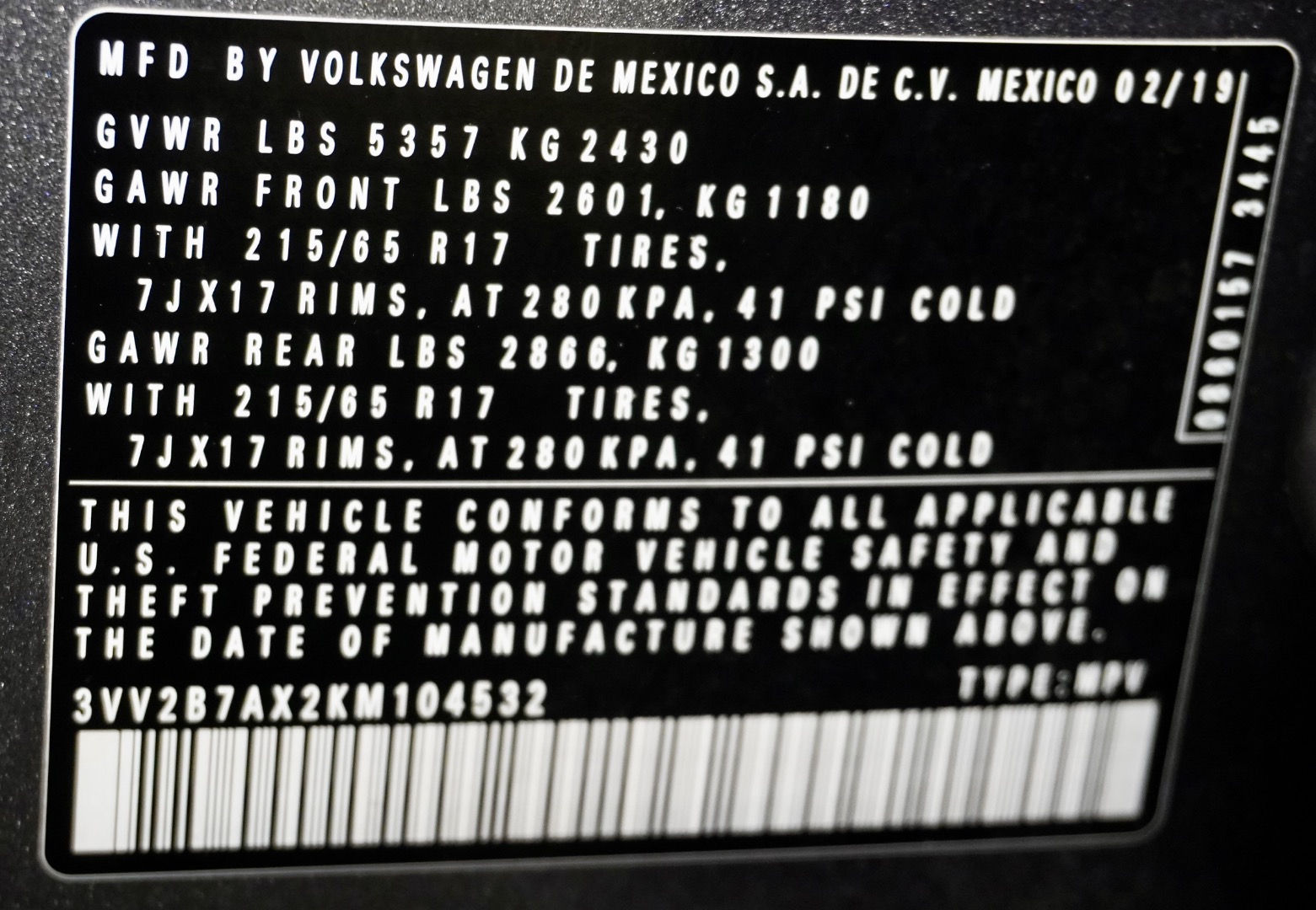 3VV2B7AX2KM104532